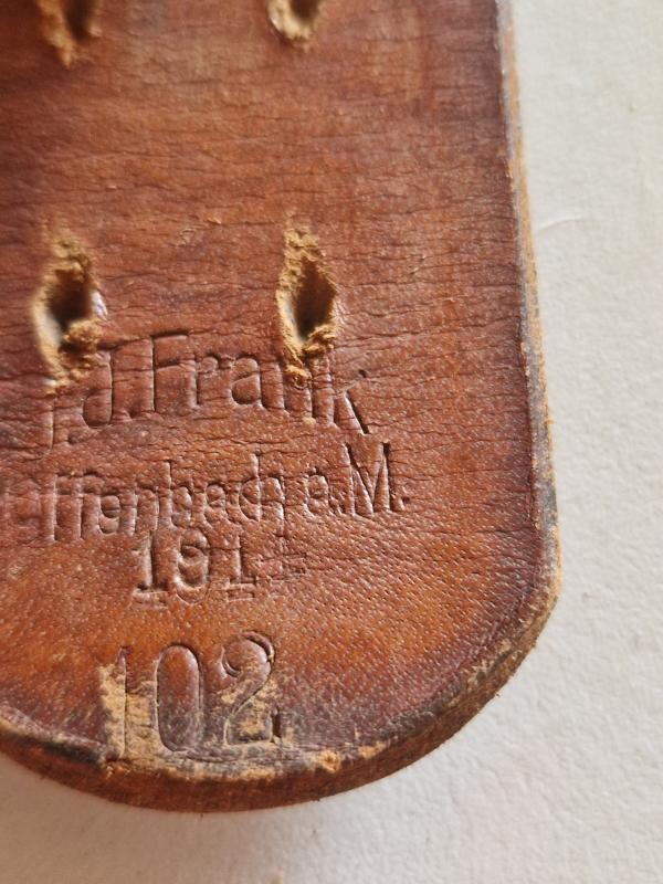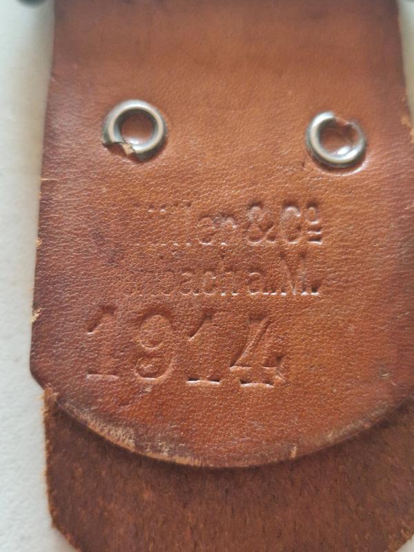 Early buckle with 1914 dated fob and also nice 1914 dated belt in size 102 cm.