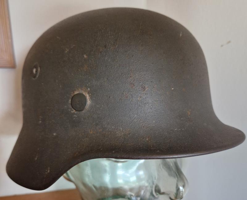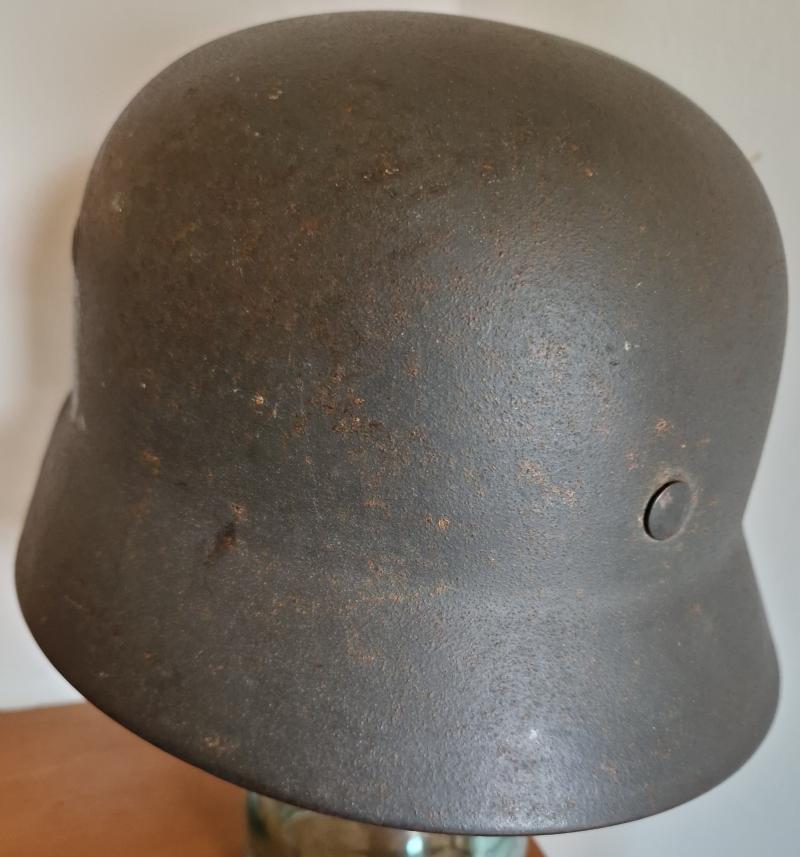Original liner and buckle section of strap. Decal has been wartime removed. Liner is size marked 58 with NS66 shell.Lot number 0139.