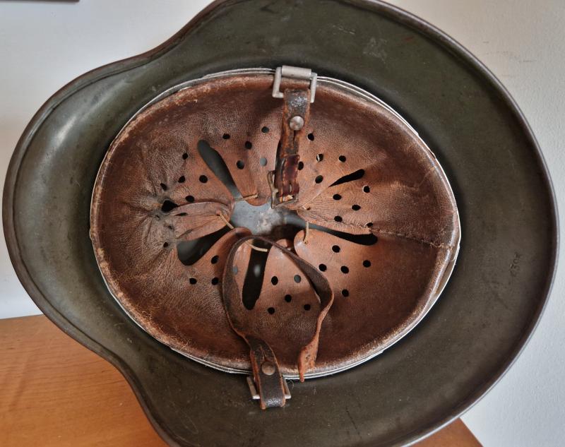 A nice example with shell marked ET64 and lot number 4395.Original liner and worn chinstrap.