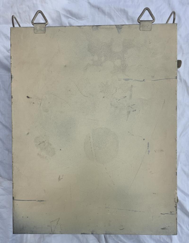 Almost complete and very hard to find item.Has loops to attach to wall and carry handles.Heavy item.